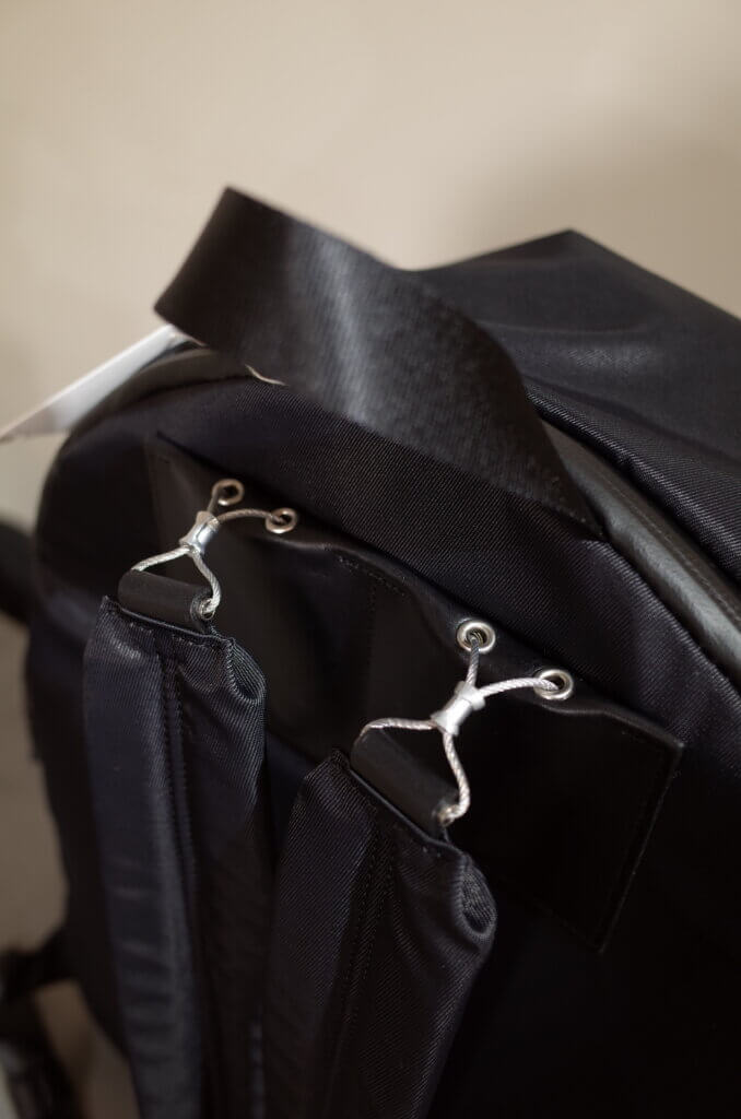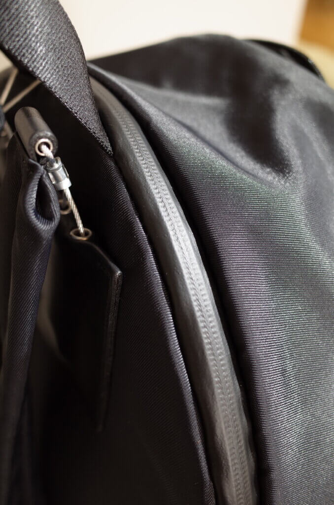 背面側の止水ジップポケットにはウレタンが内蔵されておりPCなどの収納に適しています
