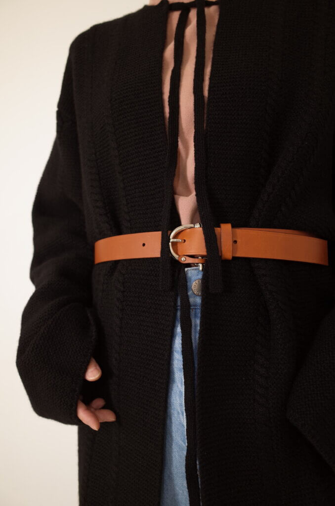 ロング丈のアイテムににベルトを取り入れることでウエストラインが強調され、脚長効果やシルエットをすっきり見せることができます