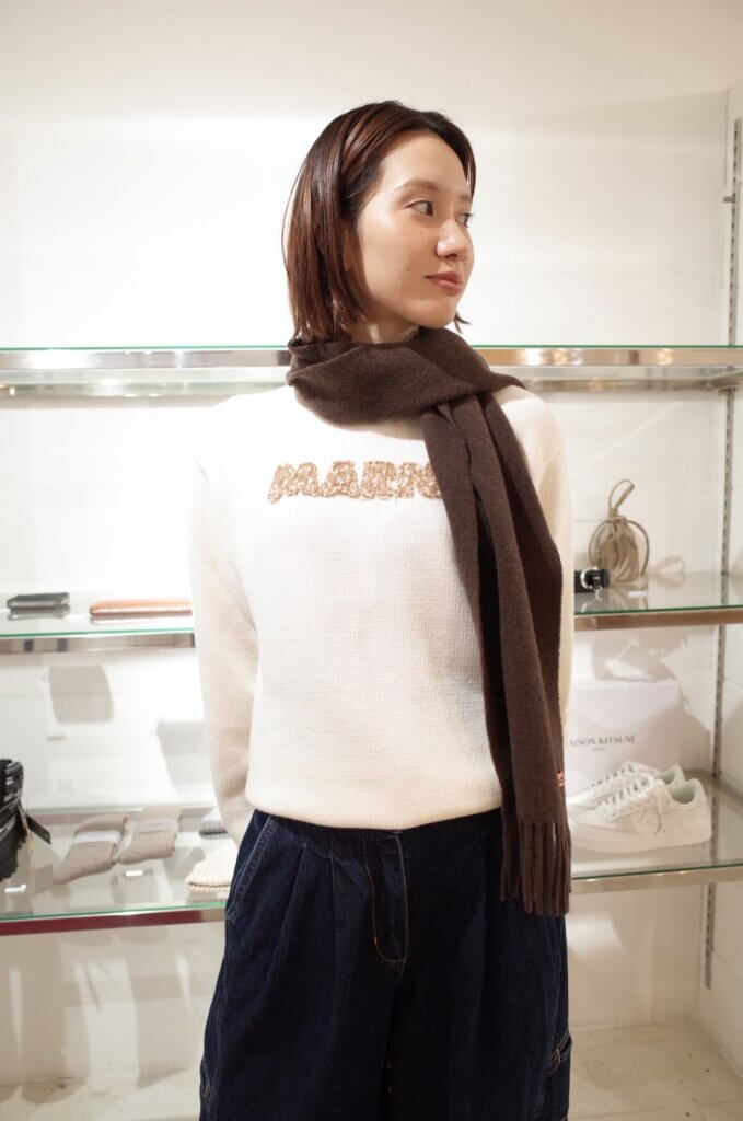 MAISON KITSUNE のメンズニットを女性らしくコーディネートしてみました🦊