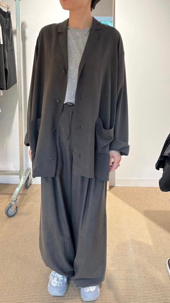 モード感はあるけれど、気負わずに取り入れる事ができて普段のスタイルに自然とエッジを足してくれる一着です